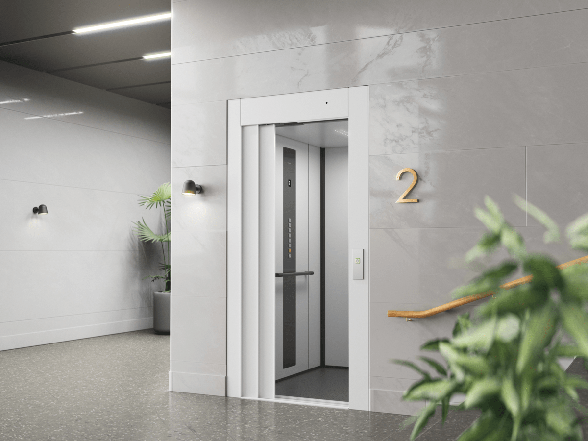 Accueil » Nos solutions » Ascenseurs cabine » Cibes C1 Pure Ascenseur » C1 Serie_Facade Portes tôlées ouvertes