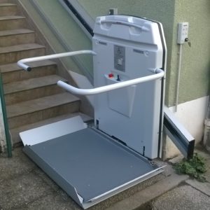 Nécessité de disposer en bas de l’escalier de 1,50 m environ (selon la pente) pour assurer l’accès à la plate-forme.
