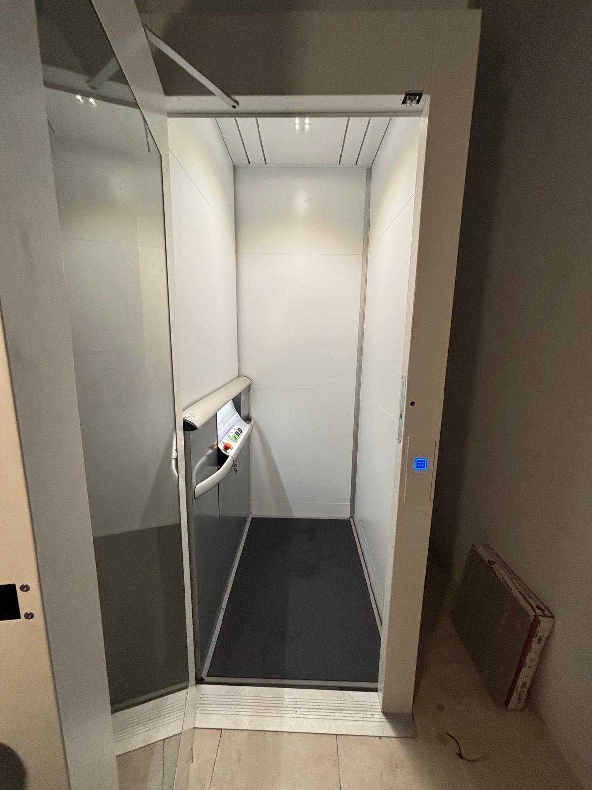Installation d’un élévateur CIBES A5000 sur la commune de Gardanne (13), en intérieur, sur 3 niveaux. Accès simple. Course totale : 5800mm. Dimension de la plateforme : 800x 1217mm. Gaine tôlée. Equipé de :