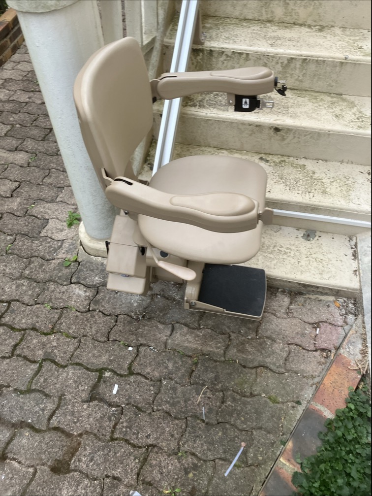 Nos équipes ont installées un fauteuil monte-escalier Elite droit extérieur à Orsay (91), installation à gauche en montant, avec un rail en aluminium, avec un départ droit devant la première marche de l’escalier et une arrivée au dessus de la dernière marche, ainsi que le pivotement manuel du siège.
